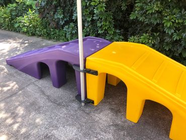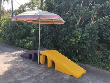 Do those midday play times ever get too hot? We know that in the Summertime everything under the sun can become VERY hot and potentially dangerous. We have the solution! Our Shade Receivers easily connect to your Puppy Playground Pro Series Equipment and provides the ability to install Umbrellas/other sun blocking components - keeping the sun off your backs! Our Shade Receivers have a built in Hole Cover ensuring their Safety even when your Umbrella in not installed.